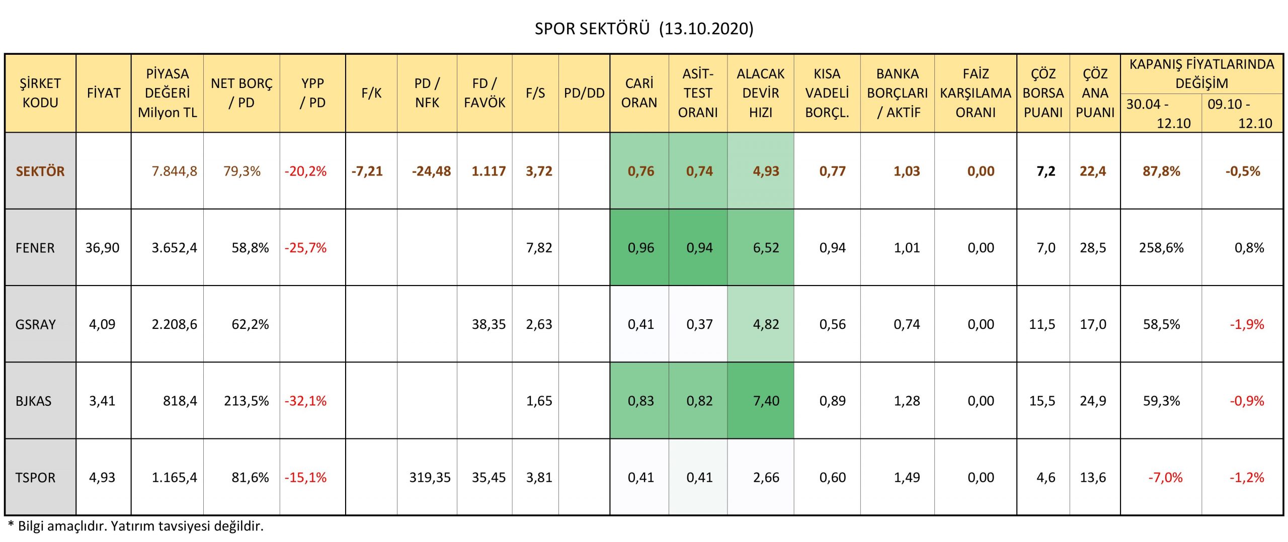 Spor Sektörü (13.10.2020)